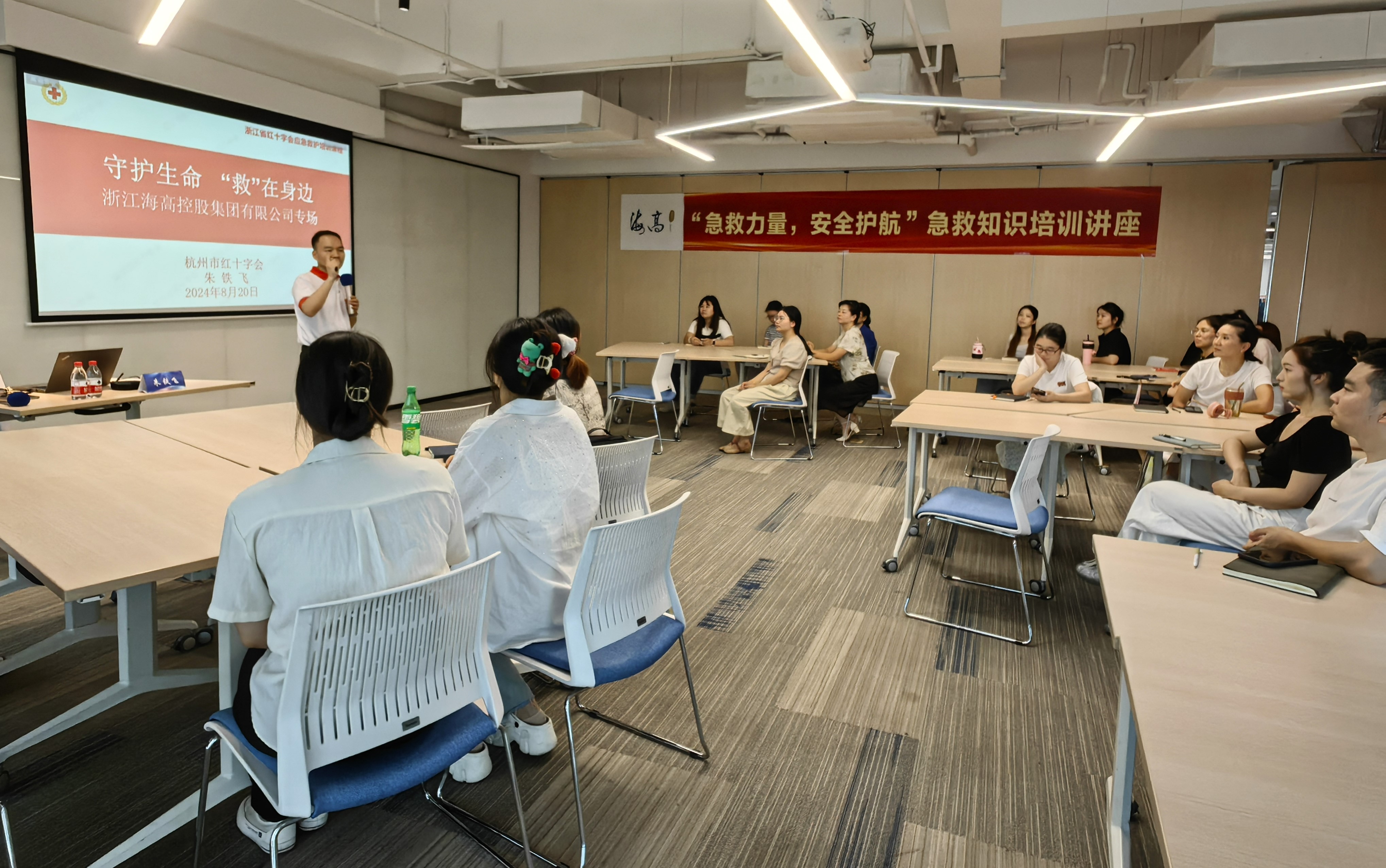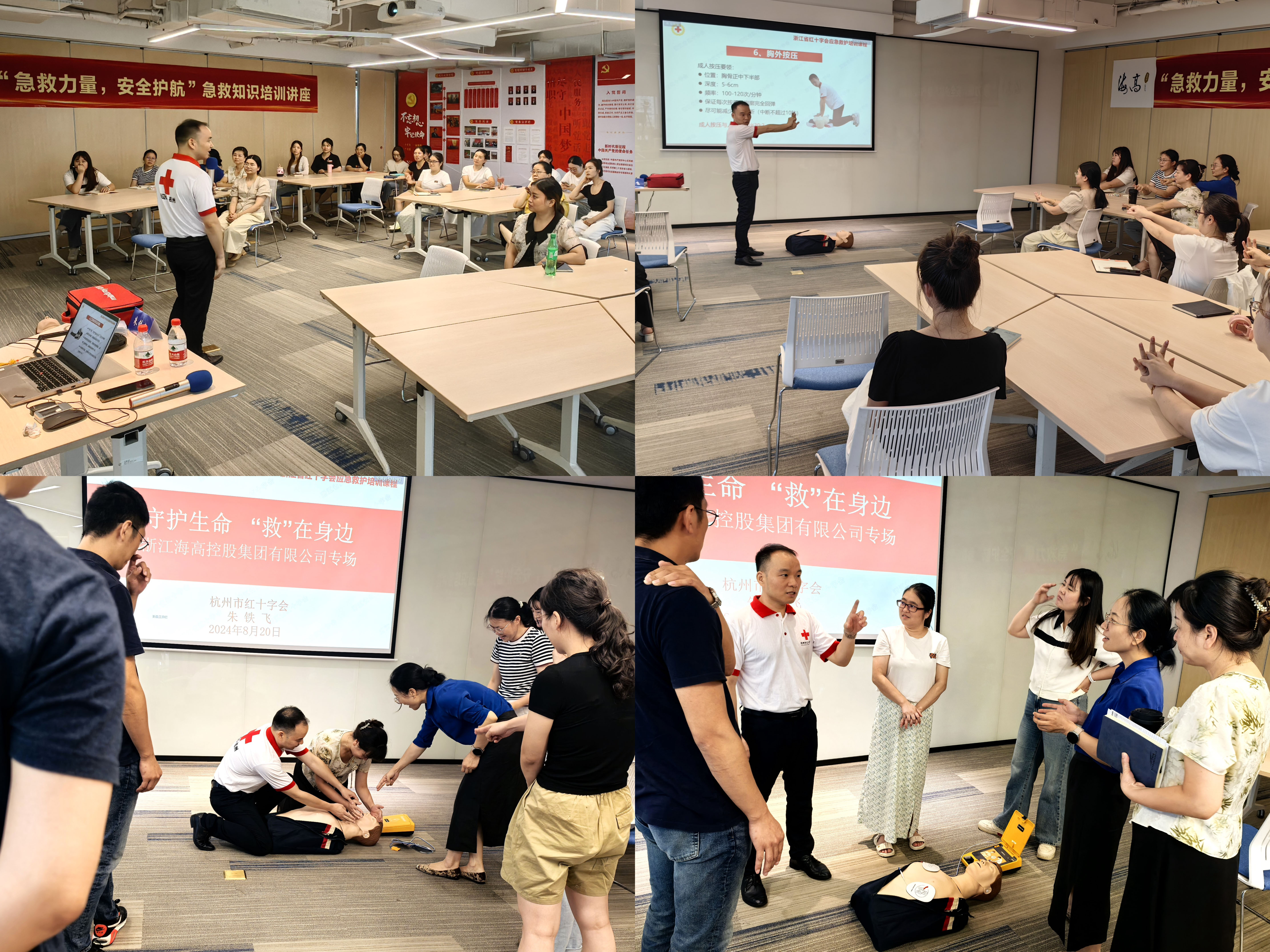 炽热的八月,海高集团“满满爱意”公益系列活动如火如荼地开展。为了提升全体员工的应急救护能力,增强个人及家庭安全防范意识,海高健康公司精心筹备并成功举办了两场以“急救力量,安全护航”为主题的急救知识公益培训讲座。