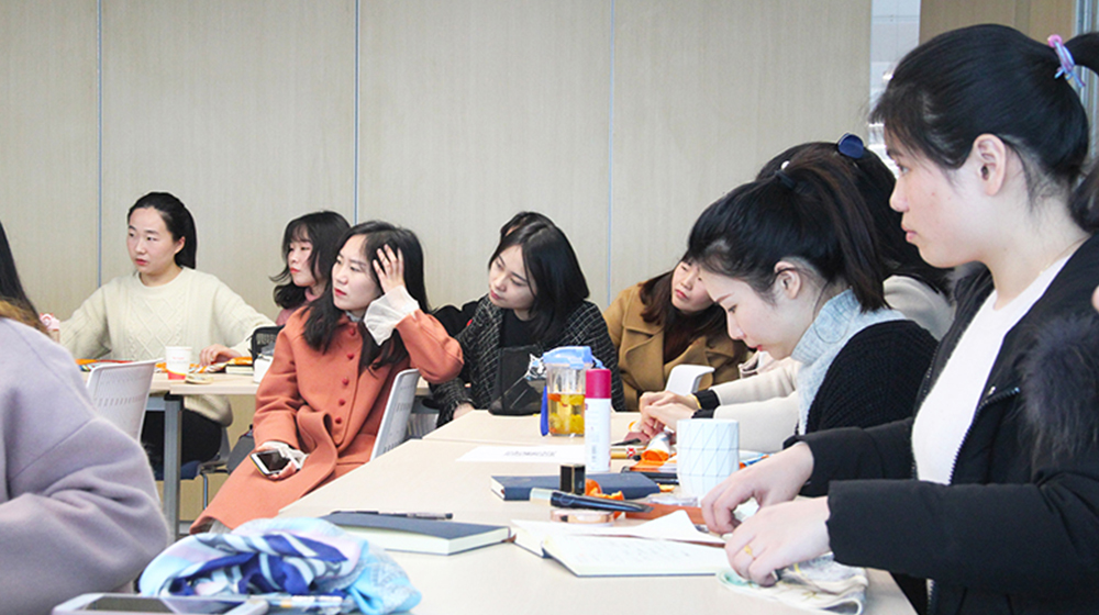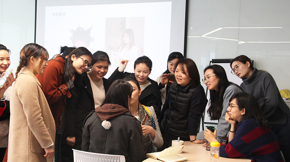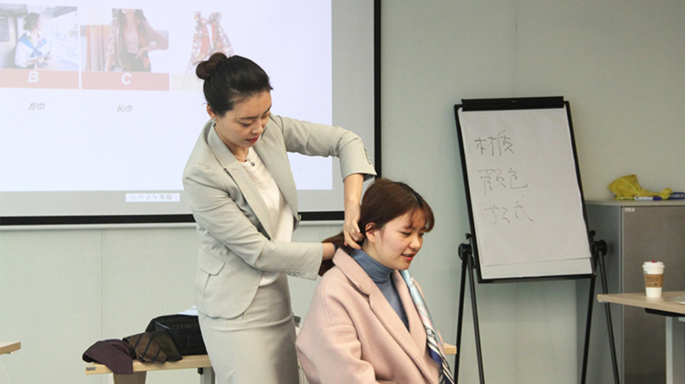唐老师详细地讲解了化妆的各个步骤,介绍了最适合职场的妆容。并为学员做了现场示范。