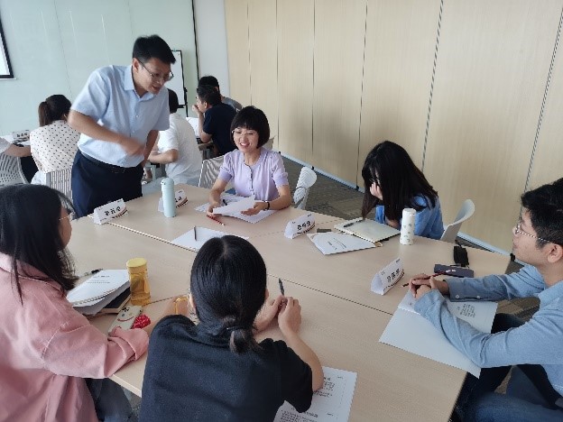 在裴老师的带领和引导下,学员们以小组为单位,沉浸式模拟经营了几家公司。通过对大环境的研究,市场规则的理解,市场规模的研判,各家公司在市场中和竞争对手们不停厮杀。培训氛围时而紧张,时而热烈,就连课间休息时间都还在和同伴投入的讨论着彼此的想法。