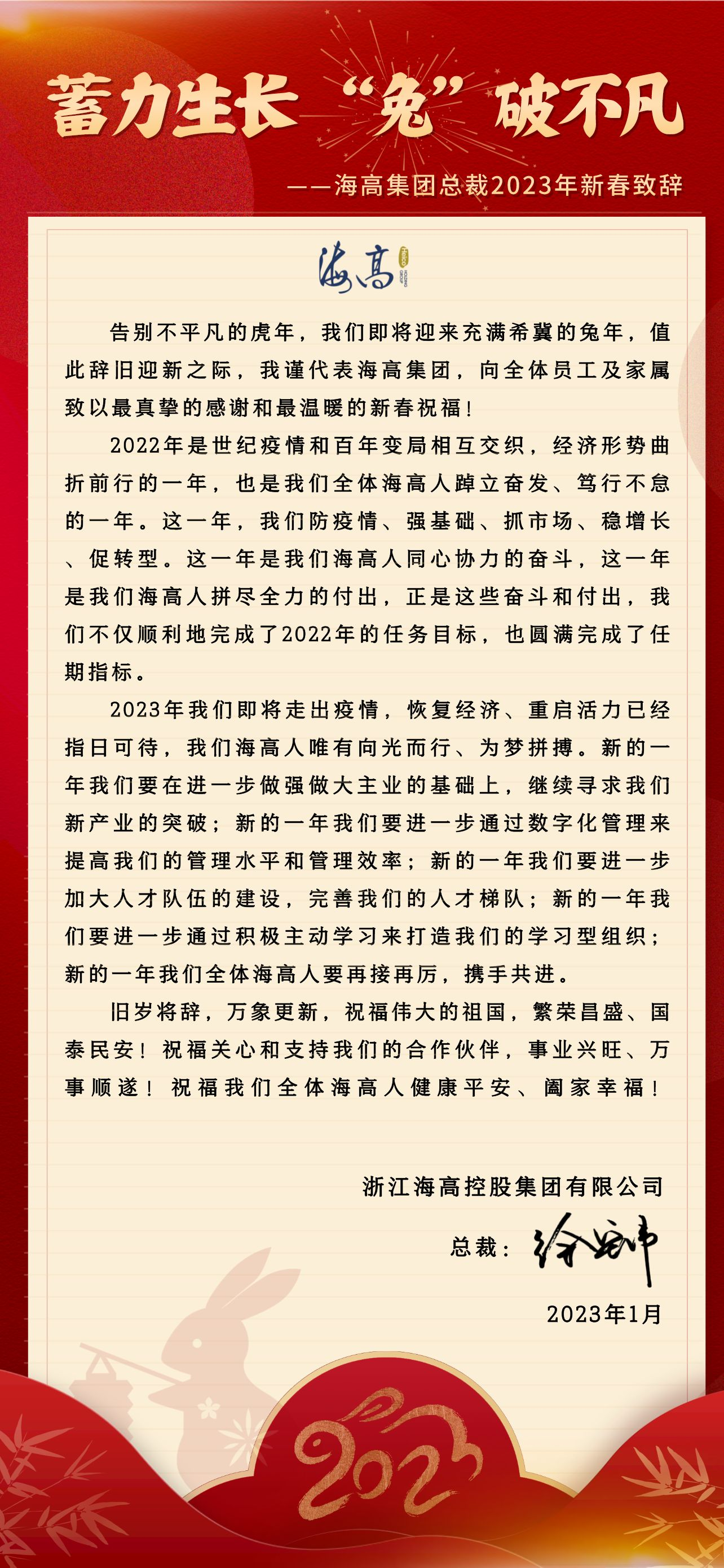 蓄力生长,“兔”破不凡 ——海高集团总裁2023年新春致辞