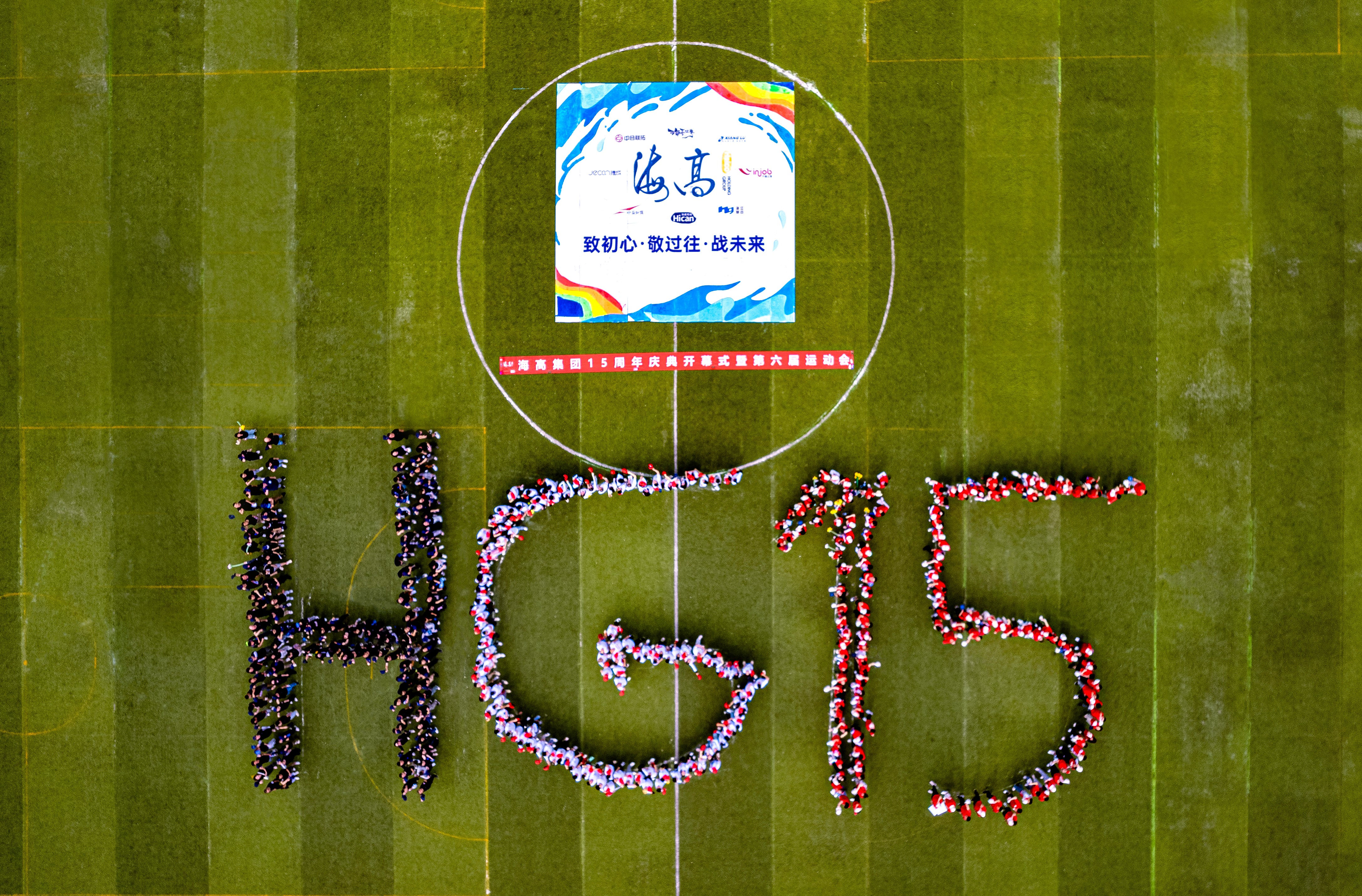 伴随着海高人振奋激昂的齐声倒数,五彩斑斓的气球缓缓升空,海高集团15周年庆典开幕式暨第六届运动会正式拉开帷幕。现场的所有海高人齐心协力,共同创作了一幅独具海高特色的“纳斯卡巨画”。这幅巨画不仅是对集团15周年庆典的献礼,更是全体海高人团结协作、共创未来的生动体现。